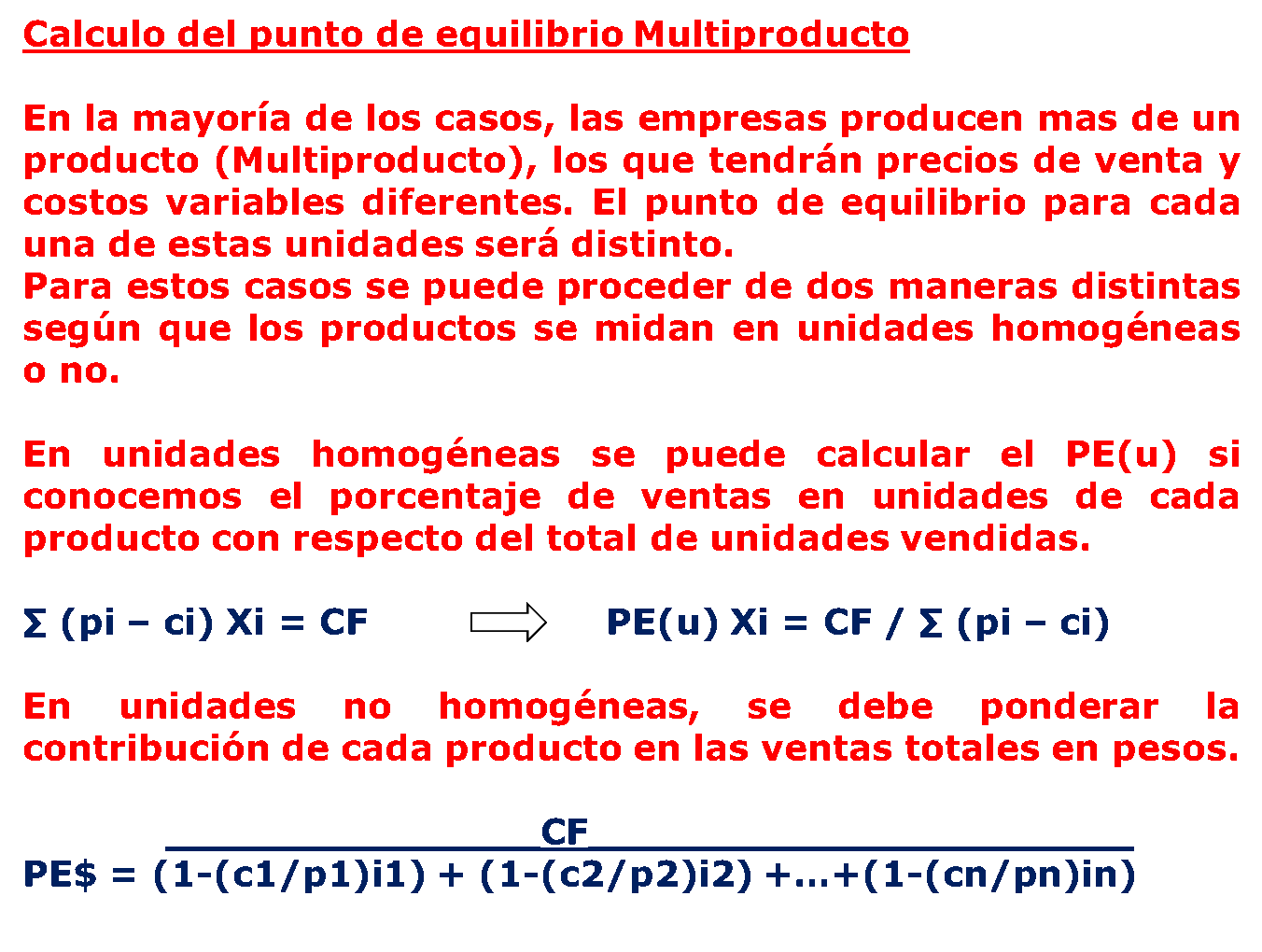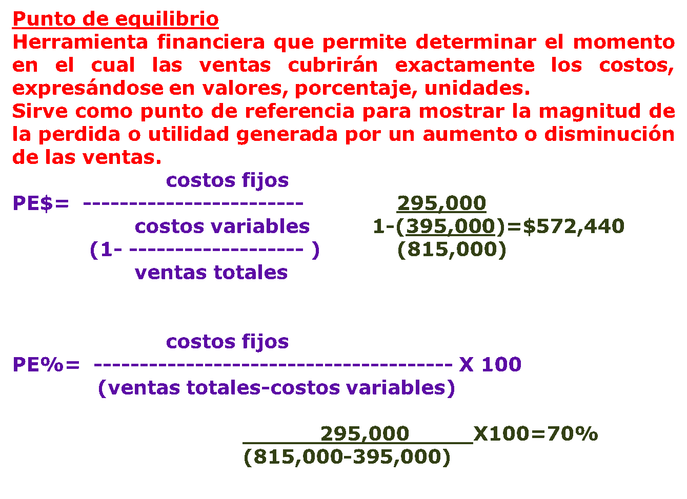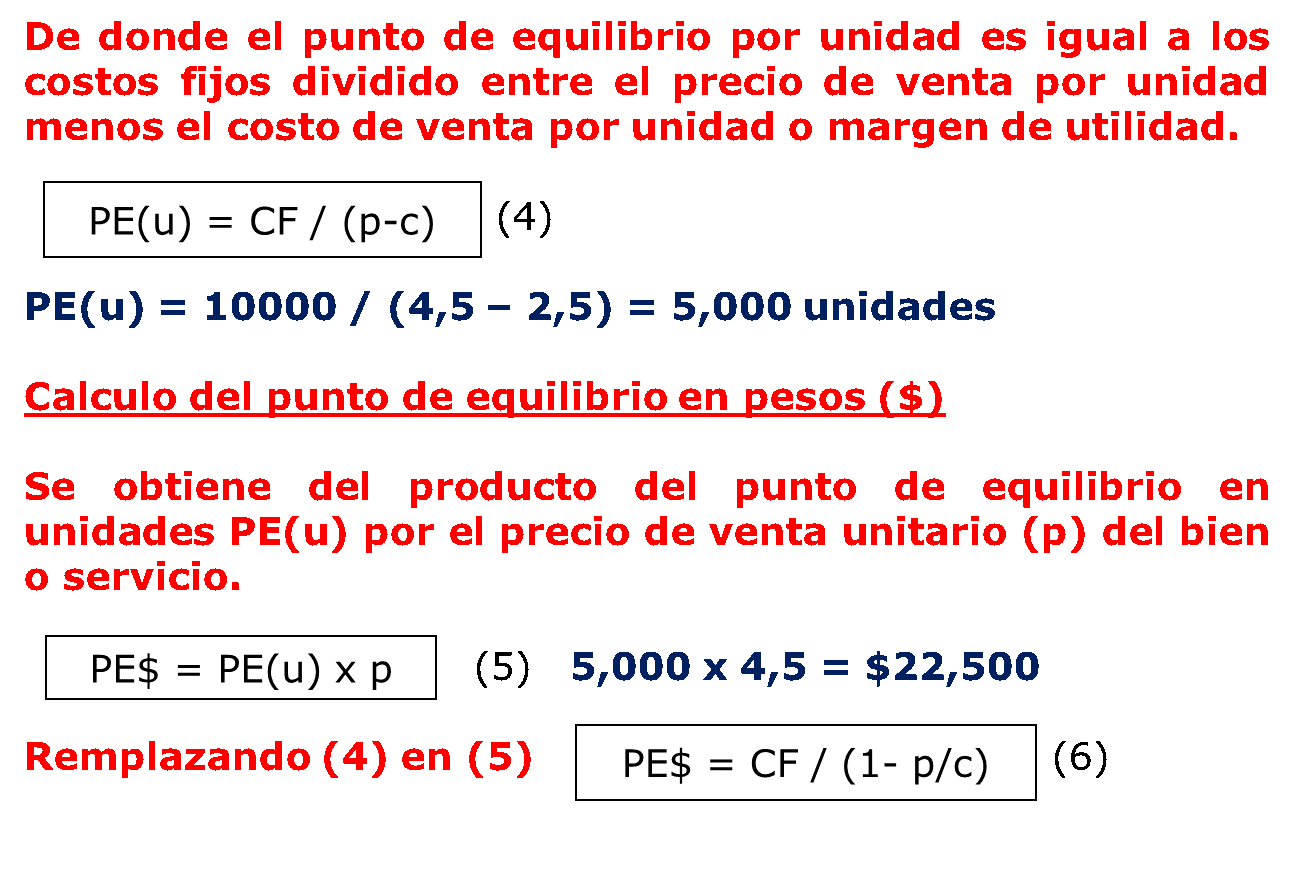 El cálculo del punto de equilibrio puede ser:
