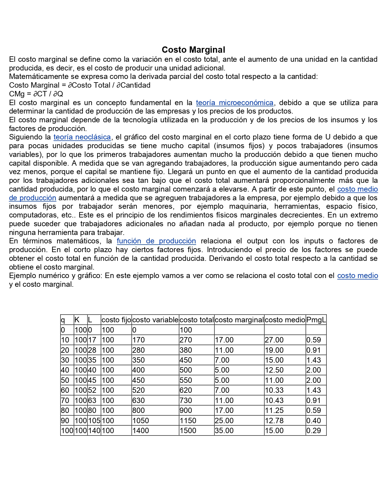 prestado, de las materias primas, materiales, mano de obra, etc. El costo